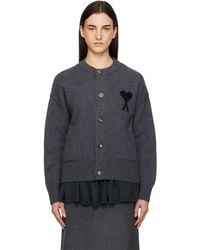 Ami Paris Polo Gris En Laine À Logo Ami De Cœur femme de coloris noir