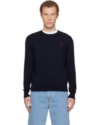 Ami Paris Pull bleu à logo ami de cœur homme