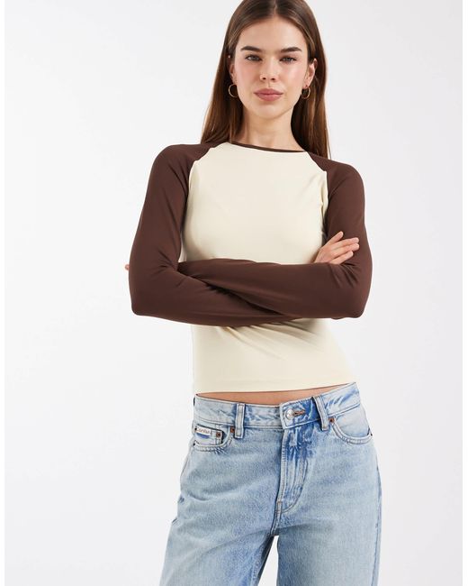 Tops par ASOS DESIGN Col ras de cou Manches raglan Design contrastant Coupe ajustée. Coloris : bleu