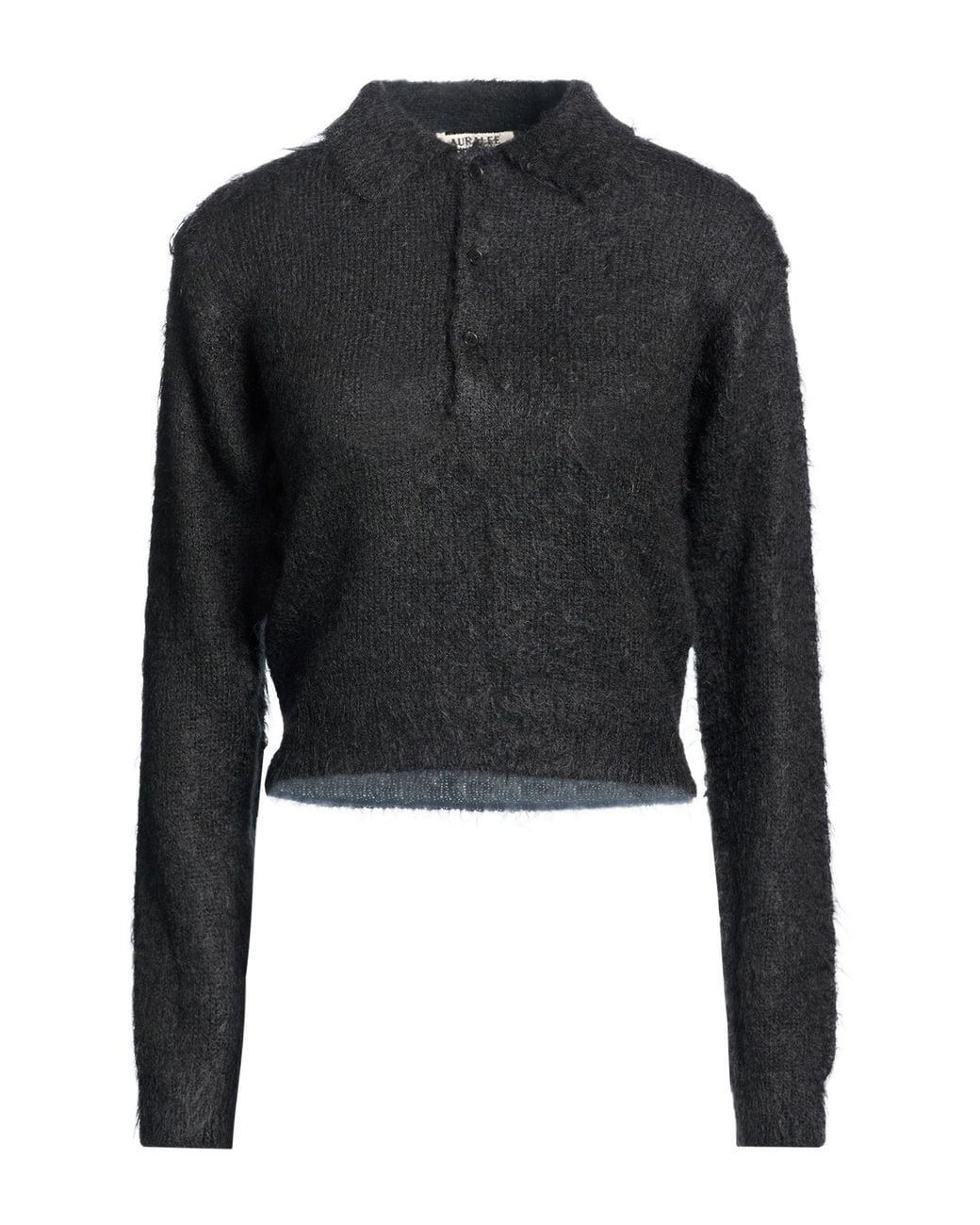 AURALEE. maille, maille semi-légère, sans applications, uni, col boutonné, manches longues, nettoyage à sec, ne pas utiliser de javel, ne pas sécher en machine. 60% Laine mohair, 40% Laine. Coloris : noir