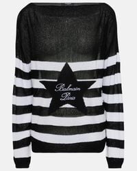 Balmain Pull Rayé À Patch Logo femme de coloris noir