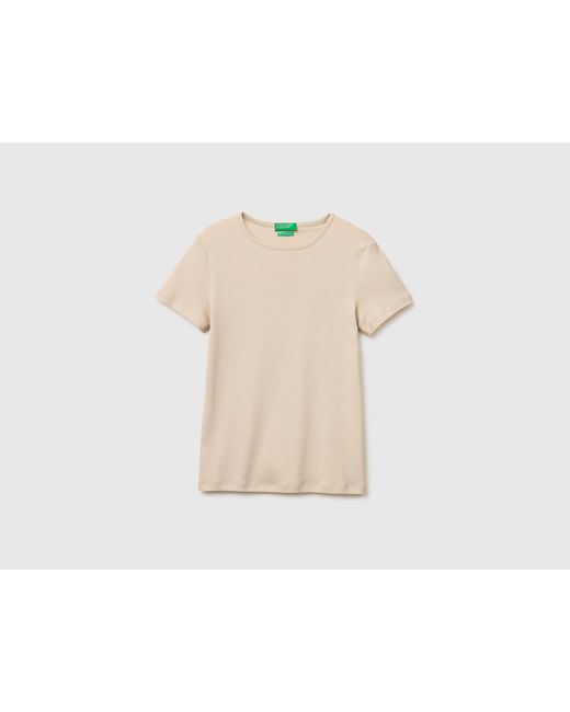 - Benetton, T-Shirt À Col Rond Ajusté, Taille, Femme