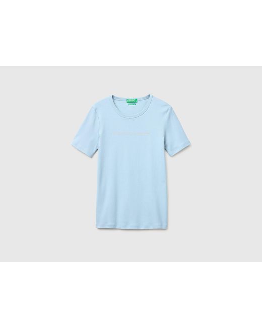 - Benetton, T-Shirt À Manches Courtes Avec Logo Pailleté, Taille, Bleu Clair, Femme