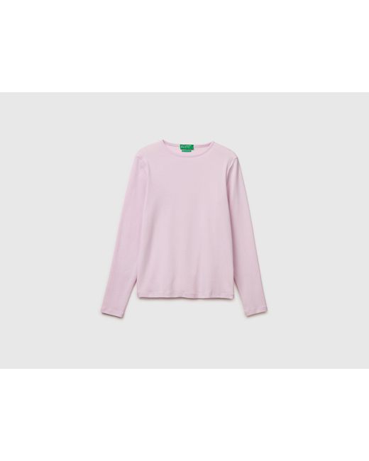 - Benetton, T-Shirt À Manches Longues Coupe Ajustée, Taille, Rose Pâle, Femme