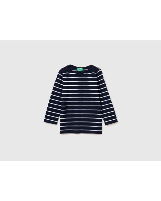 - Benetton, T-Shirt Rayé À Col Bateau, Taille, Bleu Foncé, Femme