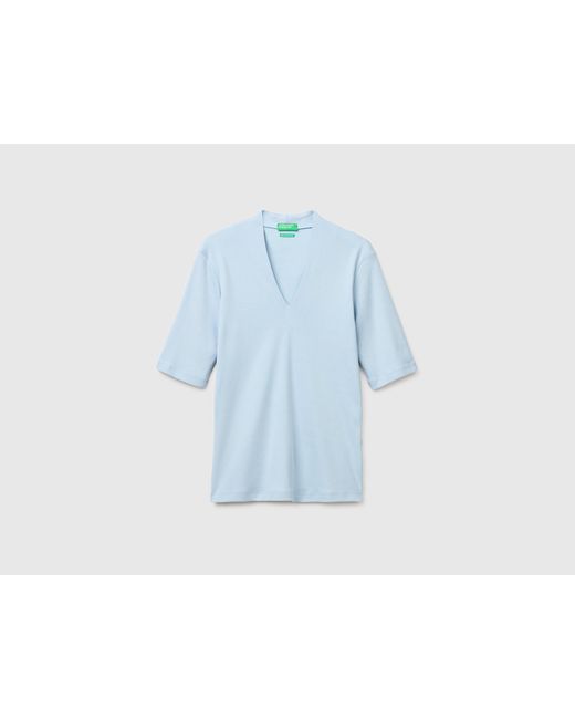- Benetton, T-Shirt Slim Fit En Coton À Fibres Longues, Taille, Bleu Clair, Femme