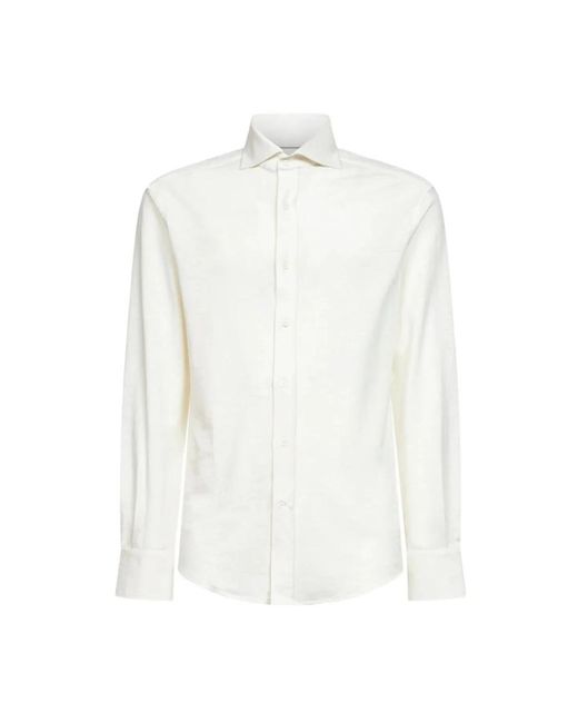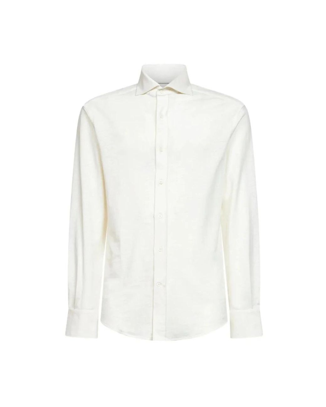 La chemise classique Brunello Cucinelli associe une confection raffinée à de subtils détails en lurex pour une tenue de soirée élégante. Cette chemise convient aux occasions où une finition soignée et discrète est de mise. Principales caractéristiques : Beige | Mélange coton-soie | Fermeture boutonnée | Poignets boutonnés | Col pointu | Manches longues | Détails en lurex | Maxi poignet avec double bouton | Composition et entretien : 73 % coton | 25 % soie | 1 % polyamide | 1 % polyester métallisé Coloris : blanc