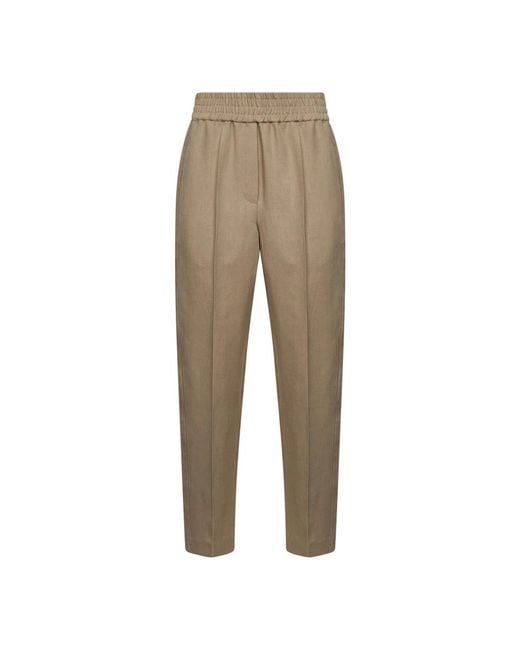 Le pantalon en mélange de lin Brunello Cucinelli combine une silhouette décontractée et ample avec un sergé fluide de viscose et de lin pour un drapé sans effort. La ceinture élastiquée et les plis pressés sur mesure en font une option raffinée pour tous les jours. Caractéristiques principales : Beige | Coquillage des sables | Viscose et lin | Ceinture élastiquée | Poches latérales | Poches passepoilées arrière | Plis de jambe pressés | Jambe fuselée | Finition en sergé fluide | Dimensions et coupe : Coupe ample | Composition et entretien : 72 % viscose, 28 % lin Coloris : neutre
