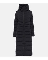 Consulter FARFETCHGris tissage entrelacé garnissage en duvet effet chiné design matelassé bouton pression et fermeture zippée sur le devant col montant capuche à lien de resserrage manches longues patch logo sur la manche poignets