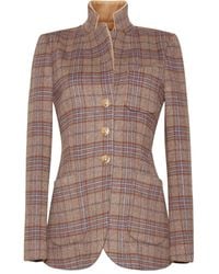 Consulter FARFETCHBeige carreaux coudières poches plaquées devant fermeture à trois boutons revers crantés Size: 00. Gender: Female. Material:coton/coton. Coloris : vert