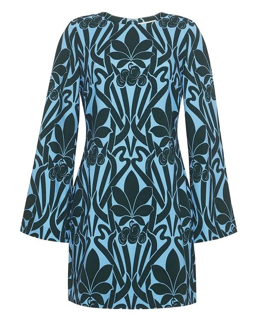 Robe Fleurie À Manches Bouffantes femme de coloris bleu