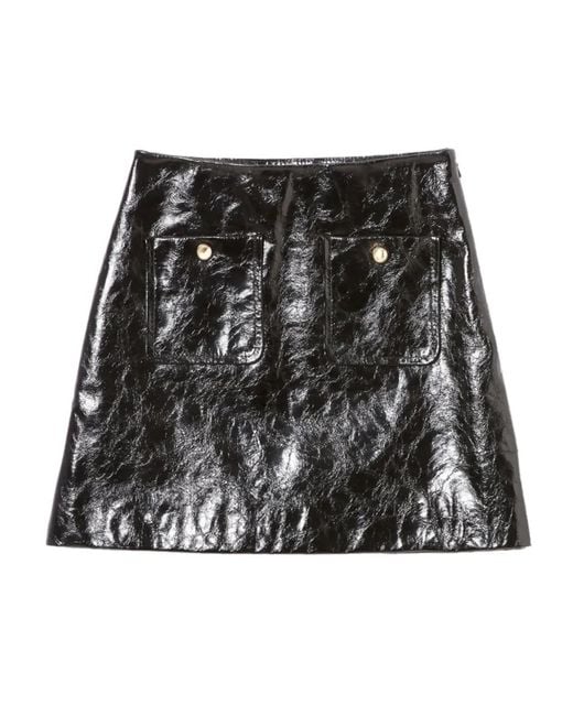 Jupe En Cuir À Détail De Poche femme de coloris noir