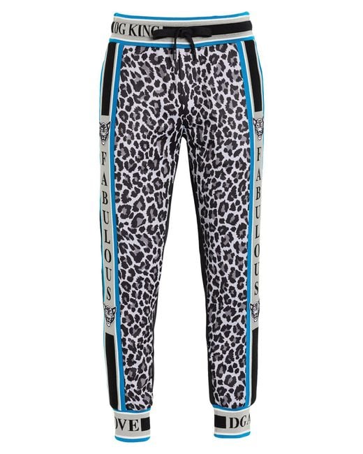 DOLCE&GABBANA. pantalon de survêtement, molletonné, maille, maille légère, fantaisie léopard, brodé, logo de la marque, taille normale, taille avec coulisse, comfort fit, poche fendue, laver en machine ou à sec, ne pas utiliser de javel, ne pas sécher en machine. 100% Polyester, Coton, Élasthanne. Coloris : bleu
