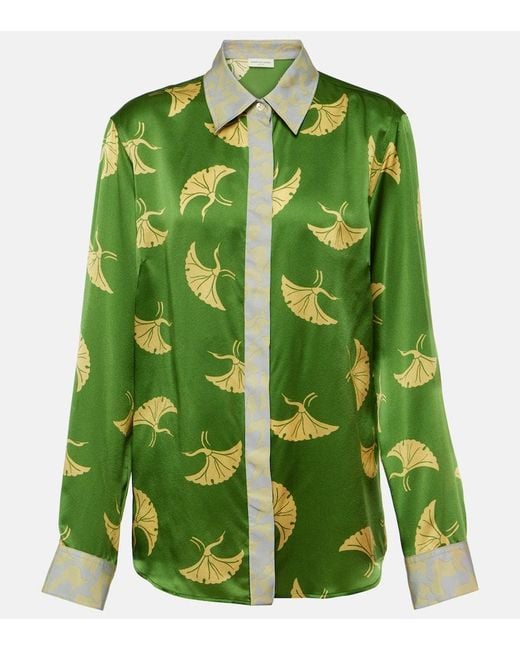 Chemise Imprimee En Satin De Soie femme de coloris vert