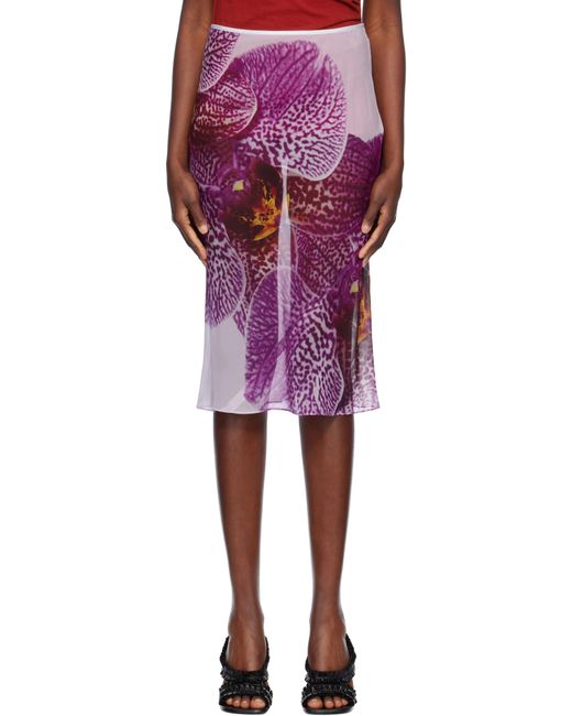 - Jupe Midi Mauve En Soie À Image Imprimée