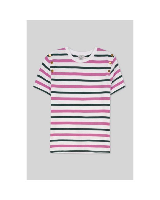 T-shirt T-shirt à rayures avec détails de bouton femme de coloris blanc
