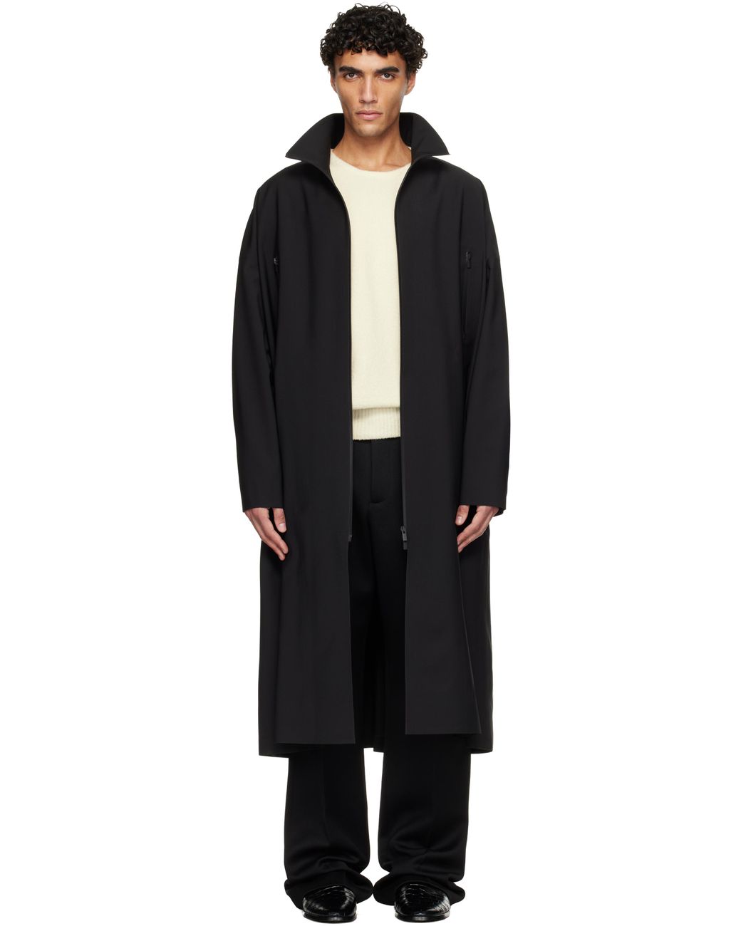 Trench en taffetas extensible de laine mélangée. · Hydrofuge · Col droit · Fermeture à glissière bidirectionnelle · Poches à glissière à la poitrine · Poche aux coutures · Fermoir à bouton-pression aux poignets · Bavolet à l'arrière Couleur du fournisseur: Black Coloris : noir