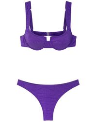 Consulter MiintoFaites une déclaration audacieuse avec ce bikini violet F**k pour femmes. Le haut est doté dune fermeture à lacets à larrière et de bretelles ajustables, tandis que le bas a une fermeture à