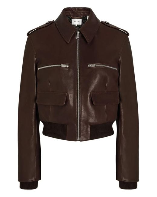 Veste En Cuir À Poche Zippée femme de coloris marron