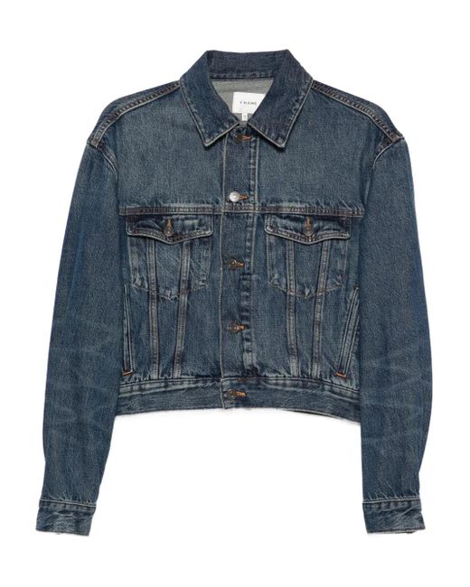 Veste En Jean À Poches Poitrine femme de coloris bleu