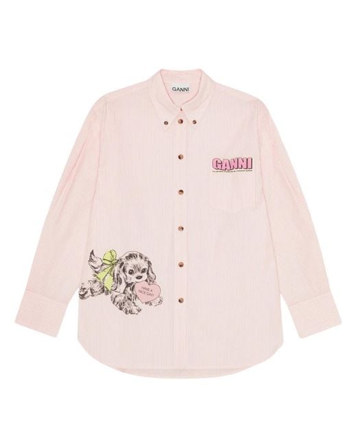 Promos exclusives ! Chemise élégante de Ganni avec un motif mignon. La chemise a un ourlet incurvé en bas et une poche à l'avant. Qualité : 100% coton. Lavage délicat à 30 degrés. Coloris : rose