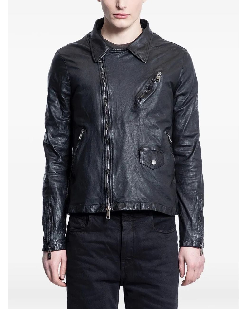 - Veste De Motard Vegetan En Cuir D'Agneau À Fermeture Zippée