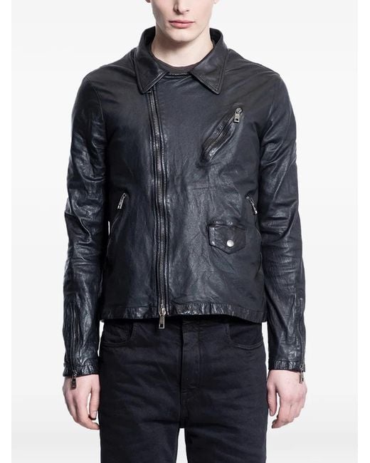 Veste De Motard Vegetan En Cuir D'Agneau À Fermeture Zippée homme de coloris bleu