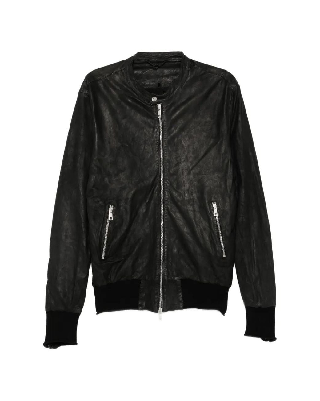 - Veste En Cuir À Col Montant