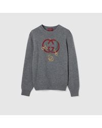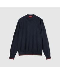 Gucci Pull En Maille De Laine Avec Broderie, Taille homme de coloris bleu