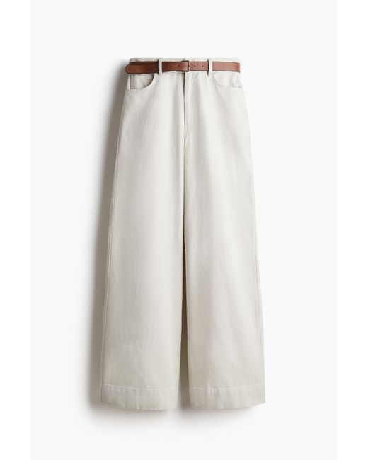 Pantalon 5 poches en twill de coton avec ceinture amovible en tissu enduit. Modèle taille haute avec braguette zippée surmontée d'un bouton et jambes larges. Coloris : blanc