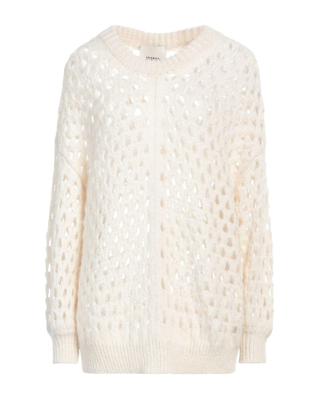 ISABEL MARANT. motif ajouré, maille semi-légère, sans applications, uni, col rond, manches longues, sans poches, lavage à la main ou nettoyage à sec, ne pas utiliser de javel, ne pas sécher en machine. 84% Laine de Baby alpaca, 8% Laine mérinos, 8% Polyamide.