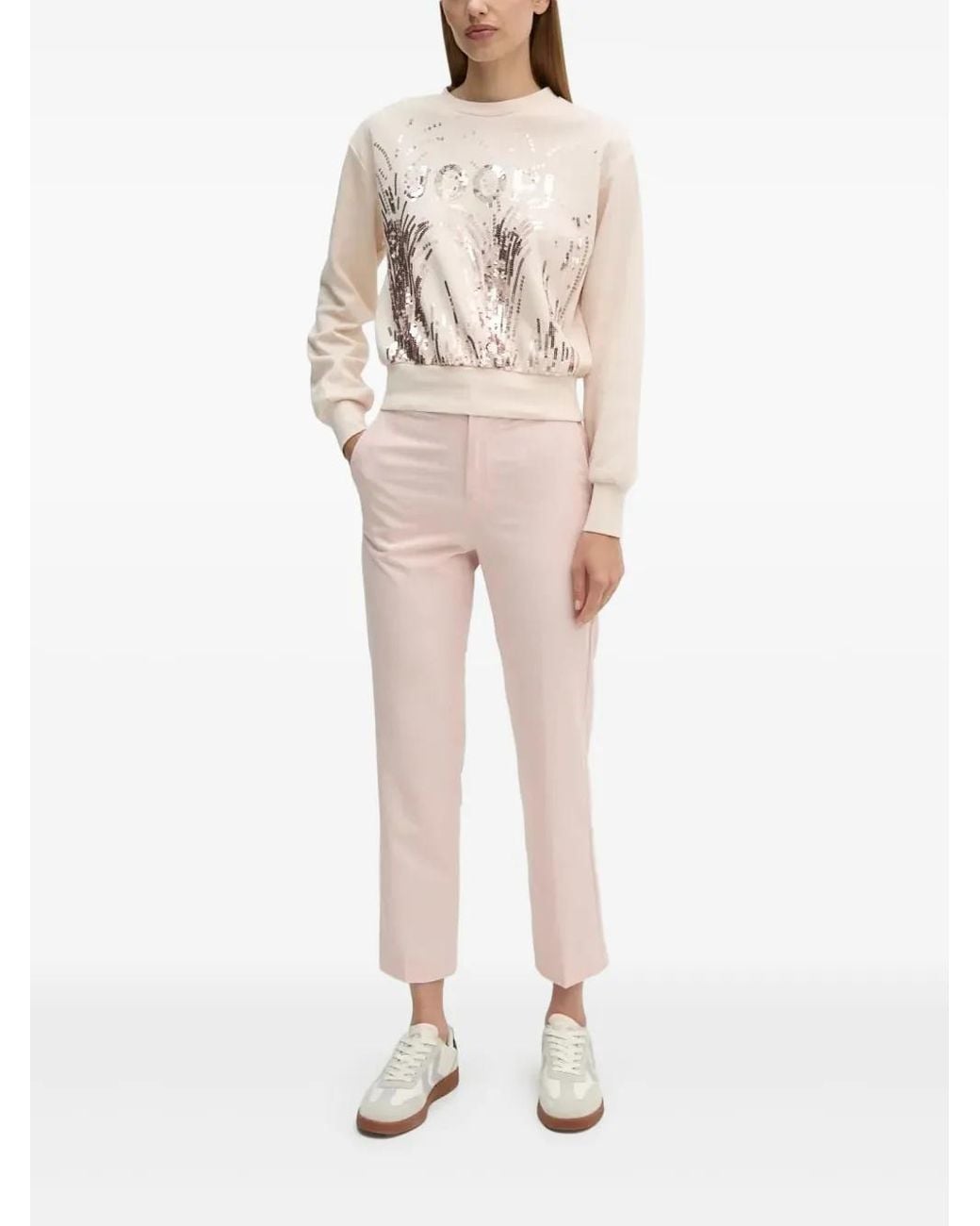 Blanc cassé ornements en sequins col rond manches longues ourlet côtelé Size: 38. Gender: Female. Material:coton/polyester. Coloris : neutre
