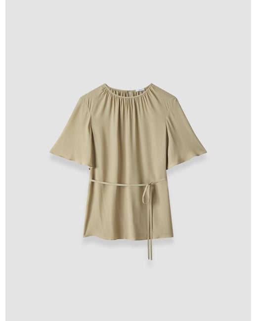 Le Top Libby en crêpe mélangé de soie est un modèle à la coupe décontractée, confectionné dans un mélange de soie léger, offrant un tombé fluide et une grande durabilité. Doté de manches mi-longues fluides et de liens optionnels à nouer autour de la taille, il se prête avec aisance aussi bien aux tenues de jour qu’à celles du soir. Coloris : blanc