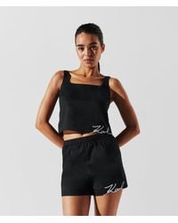 Karl Lagerfeld Signature Mesh Panel Knit Top femme de coloris rouge