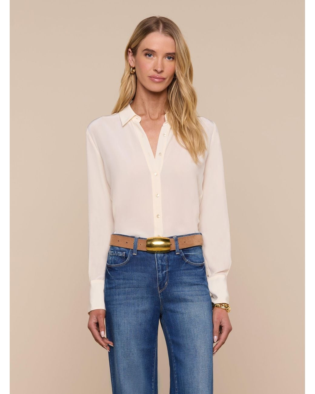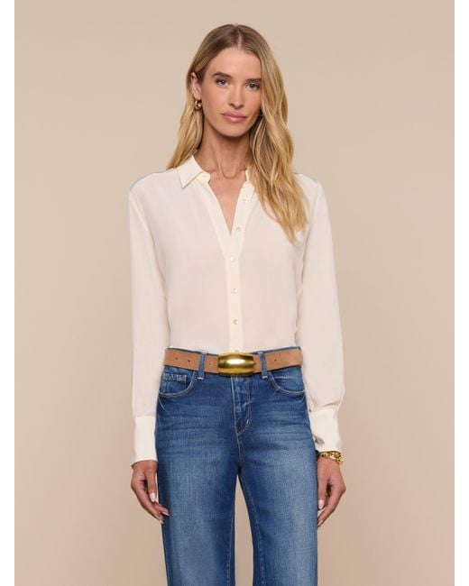 Blouse Babette En Soie (Écru) femme de coloris bleu