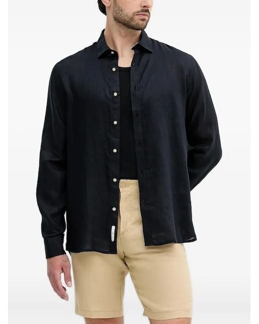 Chemise En Lin À Imprimé Végétal homme de coloris bleu