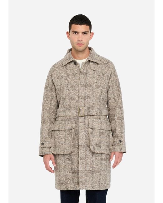 Manteau en laine mélangée Motif à carreaux all-over Col montant Poche poitrine passepoilées Poches à rabat Poignets avec bride Ceinture ton sur ton avec boucle réglable Fente dans le dos Fermeture par boutonnage sous patte Coloris : neutre