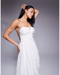 Consulter ASOSRobes par Love Triangle Inspiration pour le week-end Encolure cœur Bretelles nouées Bordure en dentelle Coupe classique. Coloris : marron