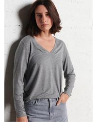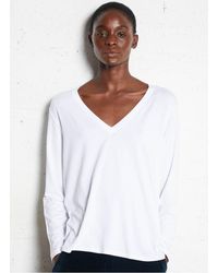 Majestic Filatures Tee-Shirt Droit Col V Femme de coloris noir