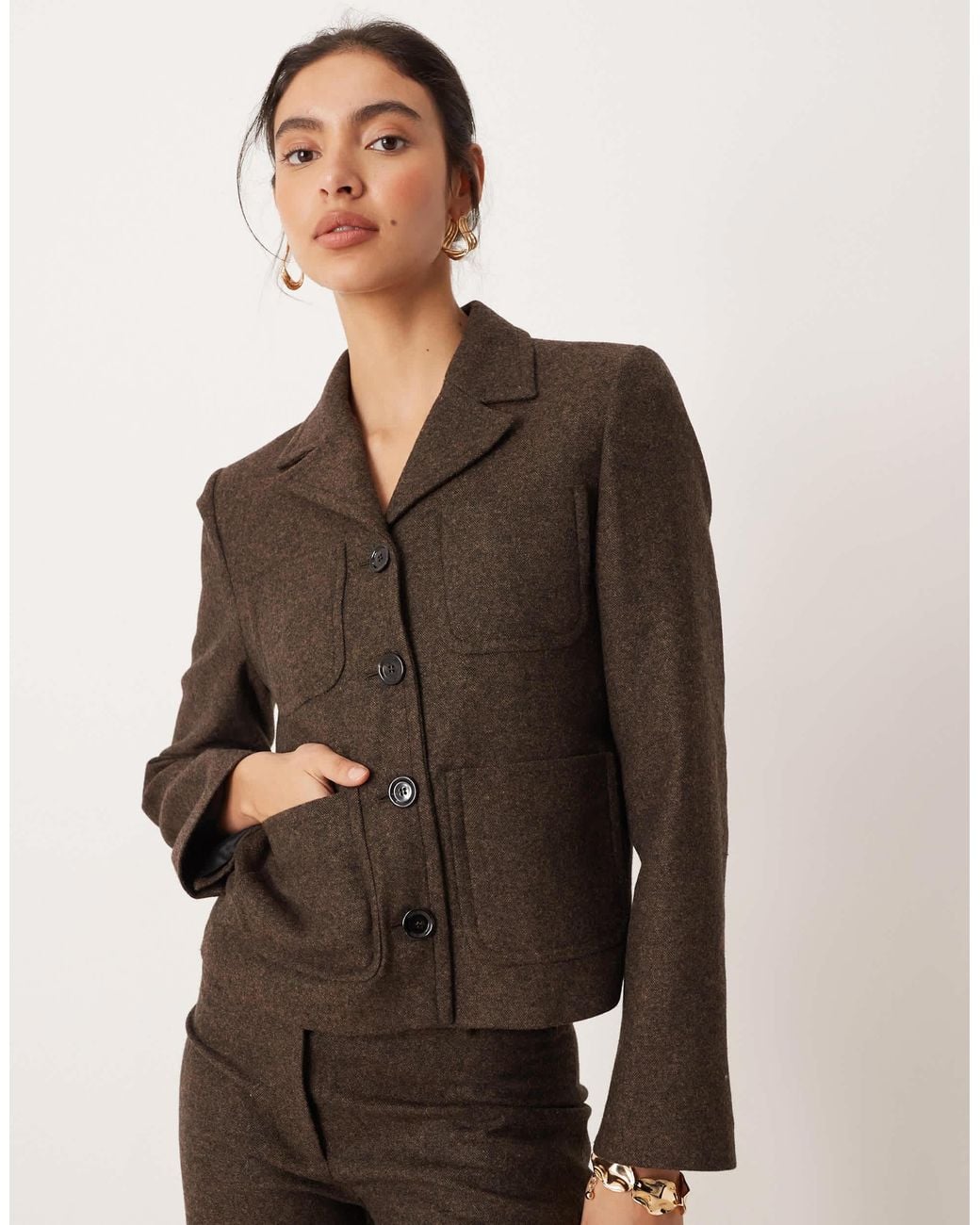 - Camila - blazer court d'ensemble en laine mélangée - chocolat