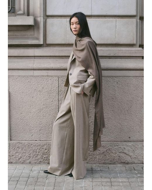 Tissu de laine mélangé, Coupe droite, Imprimé rayures, Pinces, Deux poches latérales, Taille basse, Passants de ceinture, Fermeture avant par bouton, crochet et zip caché sous patte, Total look Coloris : multicolore