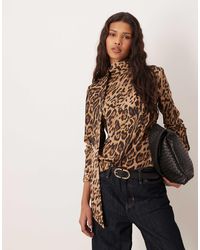 Consulter ASOSPulls & gilets par Mango Col ras de cou Manches longues Bordure contrastée Imprimé animal Coupe classique. Coloris : marron