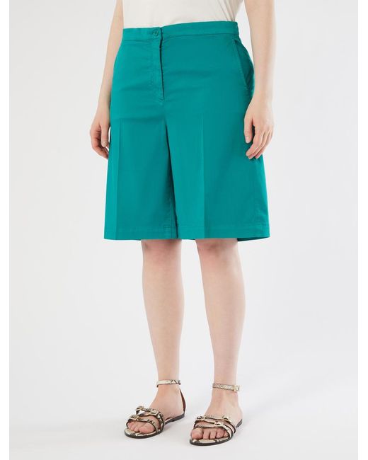 Bermuda En Satin De Coton femme de coloris bleu
