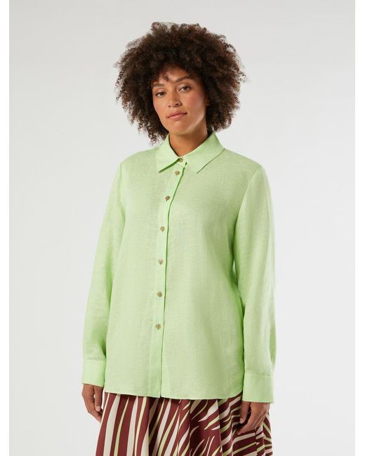 Style épuré et tissu naturel pour cette chemise en lin, à ligne droite. Une pièce polyvalente et intemporelle à ajouter à votre collection de saison. L'article fait partie de la collection Persona by Marina Rinaldi. Lin Coupe droite Manches longues Fermeture avec boutons effet corne Bas arrondi Coloris : vert