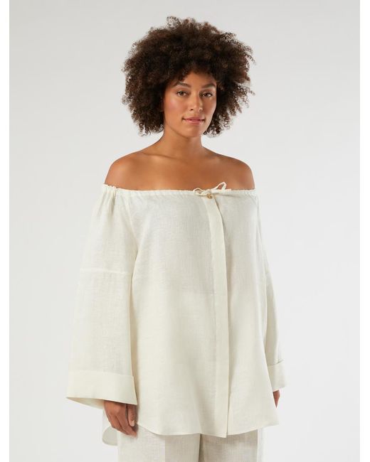 Fraîcheur et volume fluide pour ce chemisier en pur lin, à col rond réglable par cordon de serrage. Un modèle polyvalent et féminin, à porter avec désinvolture, éventuellement avec épaules dénudées. L'article fait partie de la collection Persona by Marina Rinaldi. Lin Coupe large Col rond réglable avec cordon de serrage Fermeture avec boutons dissimulés effet corne Manches trois-quarts raglan Poignets à revers Bas arrondi Coloris : blanc