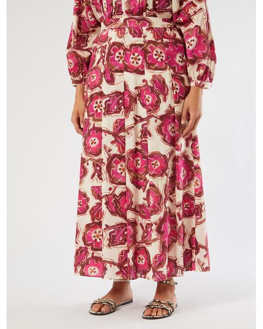 Boostez votre garde-robe de saison avec cette jupe longue en popeline de coton à l'imprimé exclusif. Créez un total look graphique avec le chemisier assorti. Le vêtement fait partie de la collection Voyage. Popeline de coton Ligne évasée Taille élastique au dos Fermeture zippée invisible Poches insérées sur les côtés Plis cousus devant et au dos Doublure légère en mousseline de coton Coloris : rouge