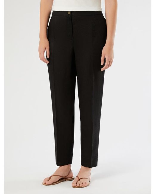 Pantalon Coupe Slim En Pur Lin femme de coloris noir