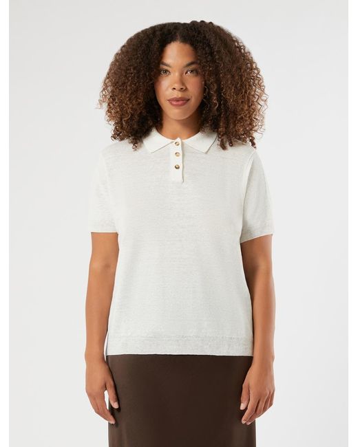 Pull Polo En Lin Et Coton femme de coloris blanc