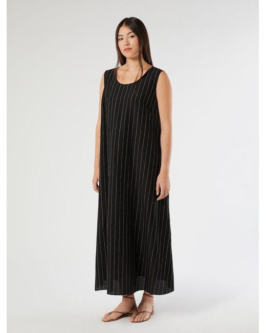 Robe Longue En Viscose Et Lin À Fines Rayures femme de coloris noir