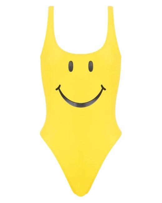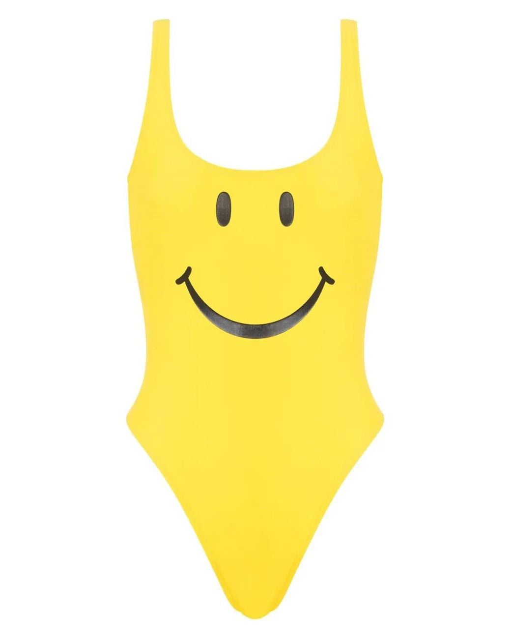 Smiley Print One Piece Swimsuit femme de coloris jaune